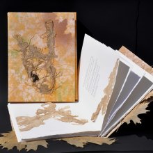 Les ouvrages réalisés mettent en scène le mot : forme, papier, caractères, gravures, similigravures portent visuellement l’écrit. Graphisme et texte ont le même poids, la même importance, il s’agit d’une double empreinte.